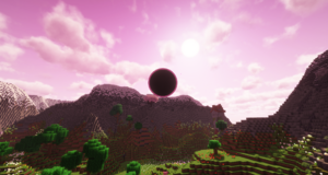 Blooming Wilds is a dimension of flowery plains & snowy mountains. The vanilla mobs spawn here, along with cave spiders. Bees are angry without provocation. Various colors of sheep spawn, along with cows, and horses. Oak & Cherry trees occur naturally.